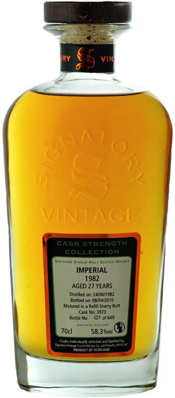 Imperial a vécu ses dernières heures en 1998. Les millésimes 1982 sont généralement représentatifs de l’âme de cette distillerie du Speyside. Cette version de chez Signatory Vintage en est un parfait exemple…